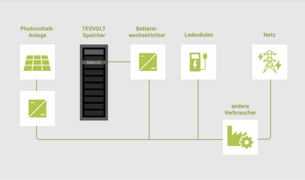 apartments are heated by current-operated infrared heating, and hot water is supplied by self-sufficient boilers that make use of surplus solar power. In the future, four charging points will feed the solar power to electric vehicles – both private vehicles and a planned car-sharing project. A key component of the energy concept is the high-performance battery storage systems from TESVOLT, which ensure that the power supply works even when the sun isn’t shining.