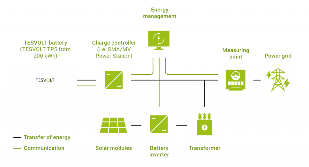 Al enige tijd voordat de gemeente de aanbesteding toewees, had de gemeenteraad vastgesteld dat TESVOLT-producten zeer geschikt waren voor het project. Gespecialiseerde partner Arun Construction Services heeft twee krachtige TPS 2000-batterijopslagsystemen geïnstalleerd. Deze worden gebruikt in de directe nabijheid van de zonnepanelen en de lokale netaansluiting in het zonnepark bij Westhampnett.