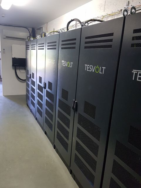 Das Solarunternehmen Hanwha Q Cells übernahm die Auswahl und Inbetriebnahme der Speichersysteme. Aufgrund ihrer hohen Qualität kamen Lithium- Ionen-Batteriespeichersysteme des deutschen Unternehmens TESVOLT zum Einsatz. Powersol SARL installierte im Unterauftrag von Hanwha Q Cells das Modell TS HV 70 mit einem kombinierten Energieinhalt von 614 kWh und einer Leistung von 120 kW.